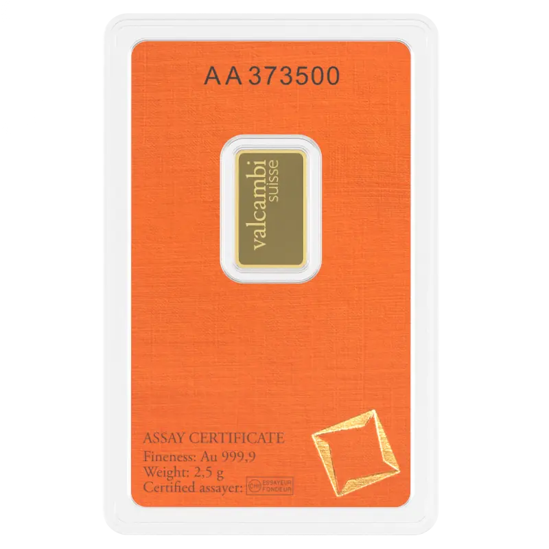 Ontdek de prachtige 2.5g gouden bar van Valcambi uit Zwitserland!