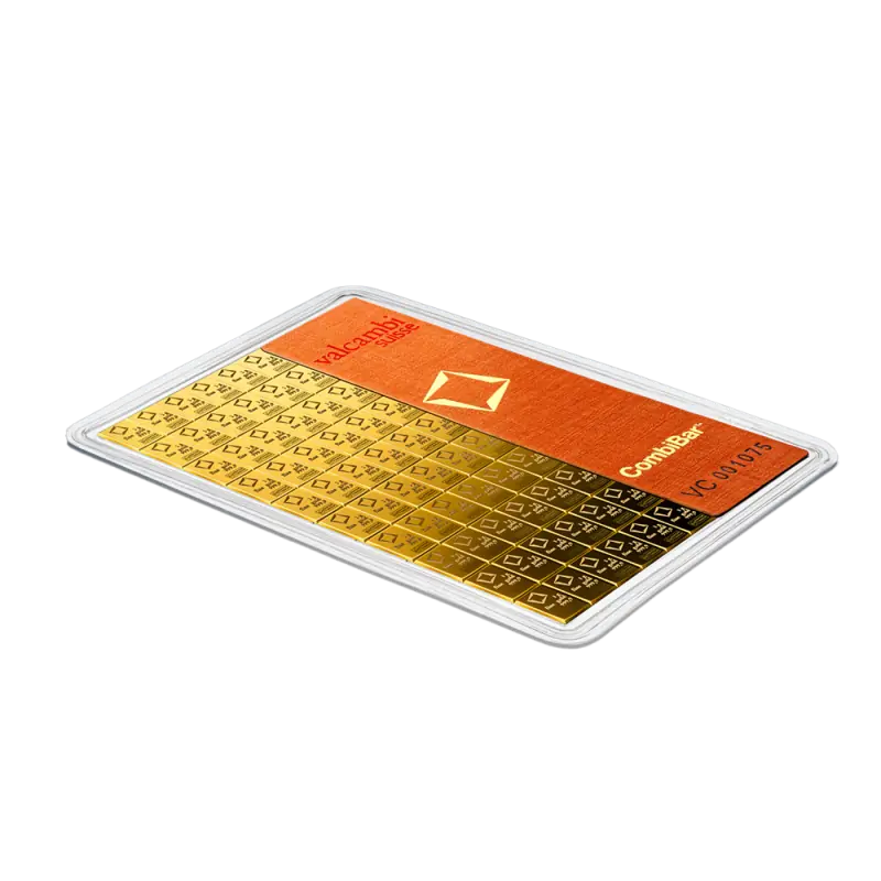 Valcambi, een gerenommeerd Zwitsers bedrijf met meer dan 50 jaar ervaring, staat bekend om zijn gouden baren van uitmuntende zuiverheid en kwaliteit. Deze unieke CombiBar® bestaat uit individuele 1 gram gouden componenten, waardoor investeerders flexibiliteit hebben in hun beleggingen. De baren hebben een prachtige glans en kleur, zijn bestand tegen zuur en zuurstof, en zijn daarom een uitstekende investering.