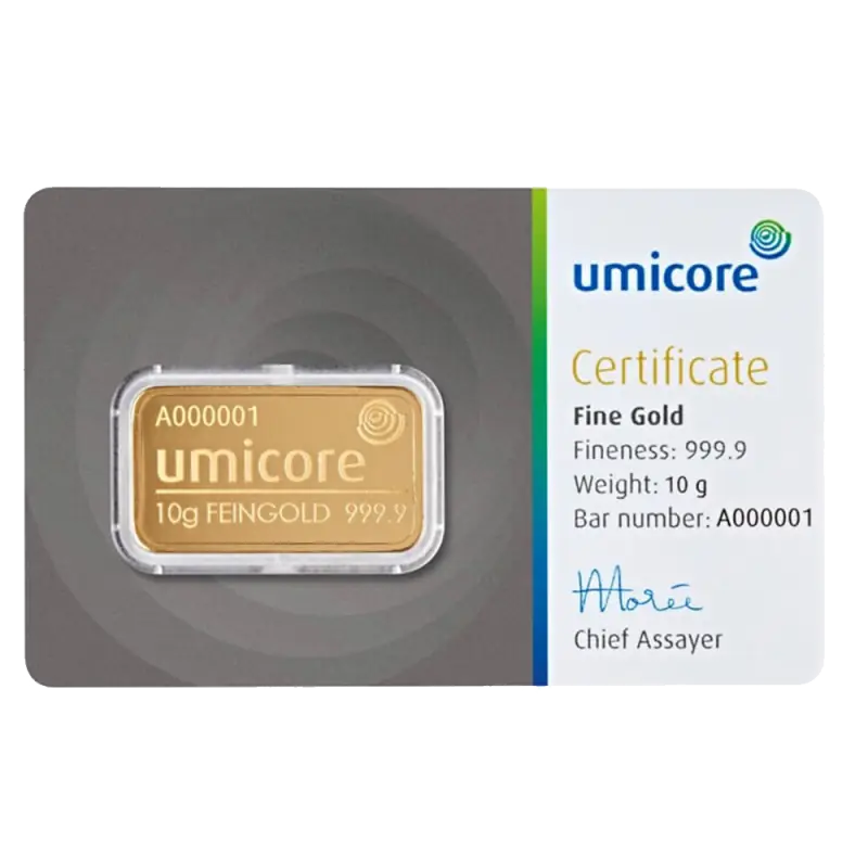 Specificaties van de 10g Goudstaaf | Umicore: