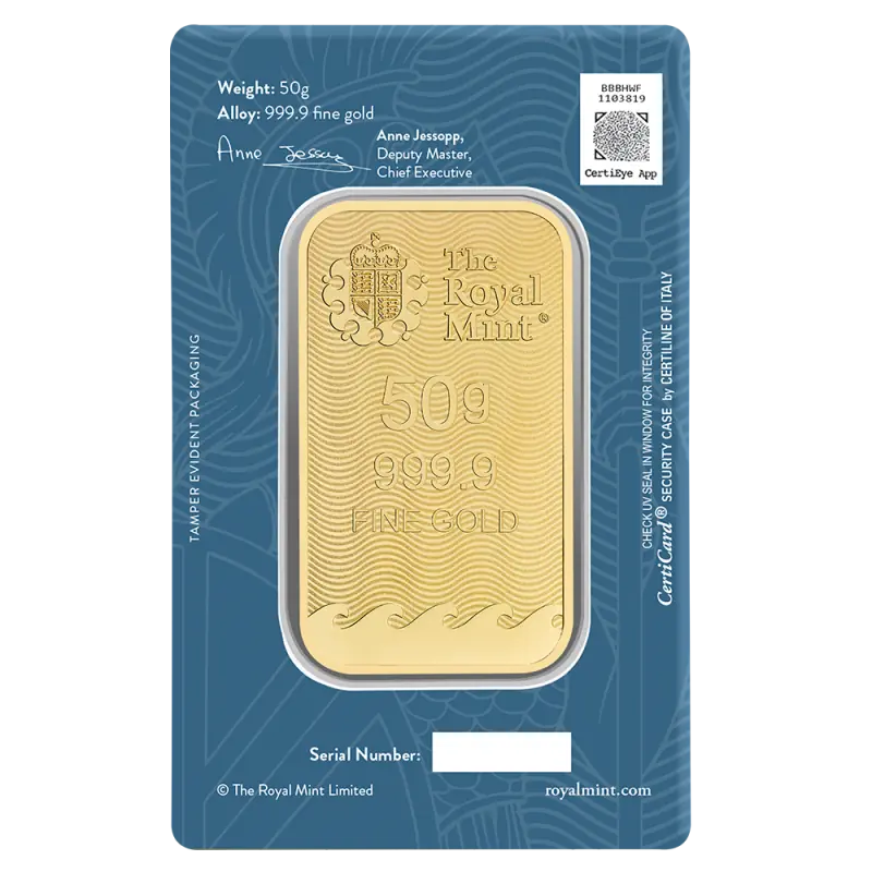 Op zoek naar een veilige investering in onzekere tijden? Dan is de 50g Britannia Gold Bar de perfecte keuze! Met 50 gram vertegenwoordigt deze gouden bar een uitstekende waarde voor je geld. Bovendien is deze Britannia gouden bar, verkrijgbaar bij Goldbase, niet alleen prachtig maar ook zeer populair.